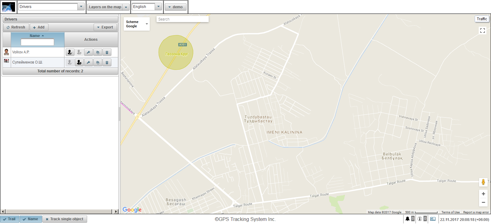 Ligeann an painéal "Tiománaithe" duit tiománaithe a chruthú agus iad a shannadh do rud. Ansin taispeánfaidh na tuarascálacha cérbh é an tiománaí ag pointe áirithe ama. Is féidir an tiománaí a chinneadh ag úsáid iButton freisin.