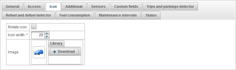 Íomhá den deilbhín réada. Is féidir leat deilbhín a roghnú ón leabharlann chaighdeánach trí chliceáil ar an gcnaipe "Library". Is féidir leat do íomhá féin a uaslódáil trí chliceáil ar an gcnaipe "Download".