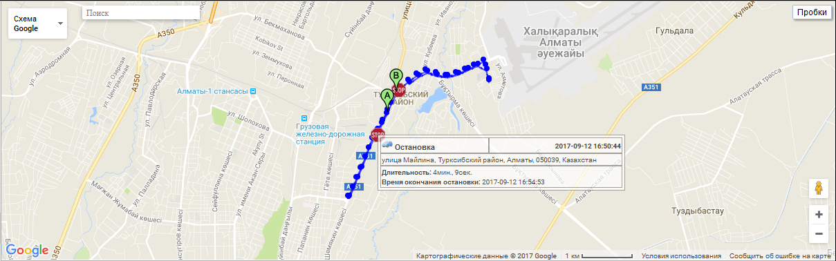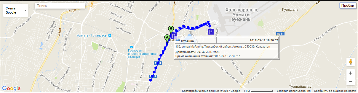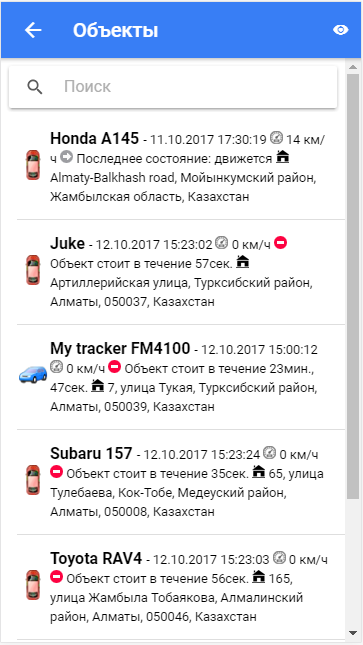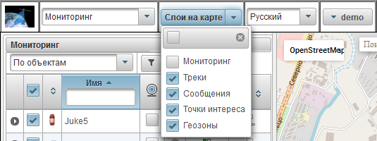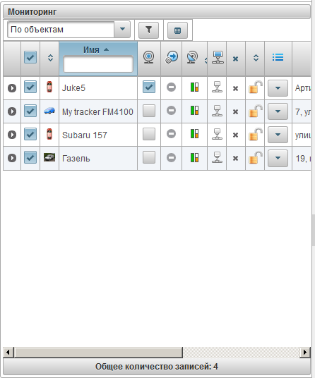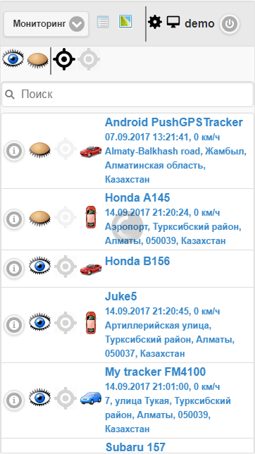 Также он появится в панели "Мониторинг". Чтобы объект отобразился в центре карты, кликните по имени объекта в списке.