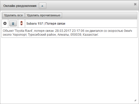 В случае корректной настройки объекта, данные начнут поступать в систему. При поступлении нового сообщения от объекта, будет появлятся новая запись в журнале. Чтобы просмотреть журнал, в нижней панели справа нажмите на кнопку отображения журнала