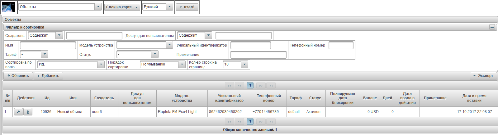 Если устройство настроен корректно и присылает данные в Систему, то чтобы увидеть его на карте, в системе необходимо создать для него объект. При создании объекта нужно заполнить следующие поля: