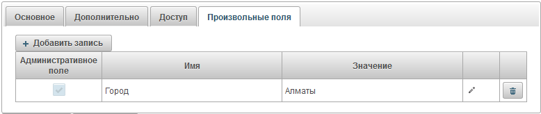 Для добавления произвольного поля нажмите на кнопку "Добавить запись".